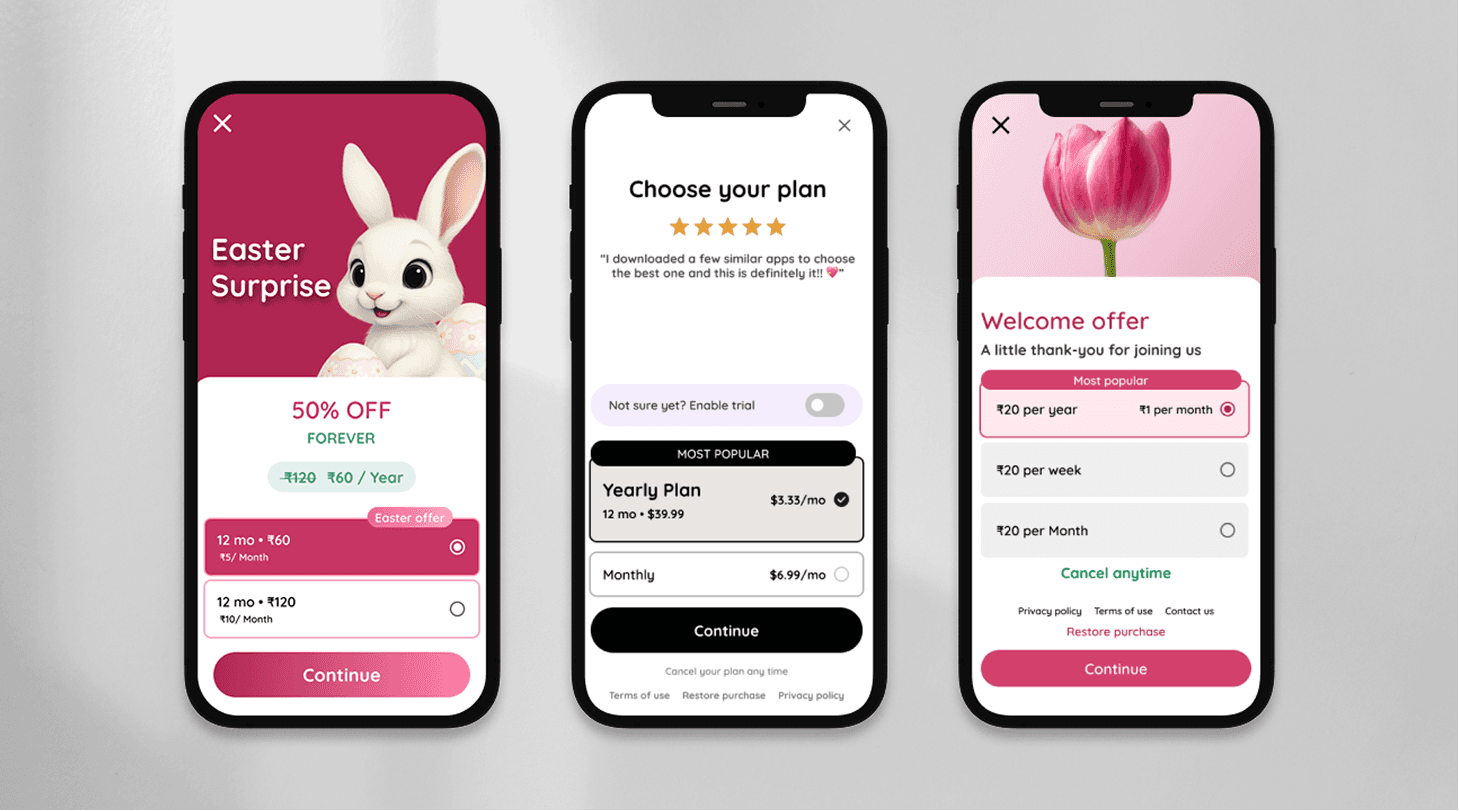 Paywalls were treated as testable hypotheses across copy, layout, and pricing.